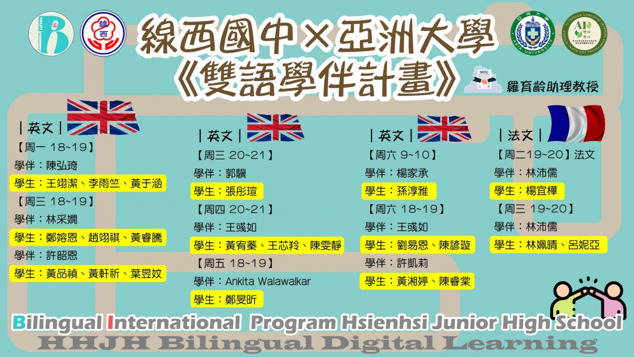 • 團體學習設立的英文小推手 (English Promotion Team for group learning)