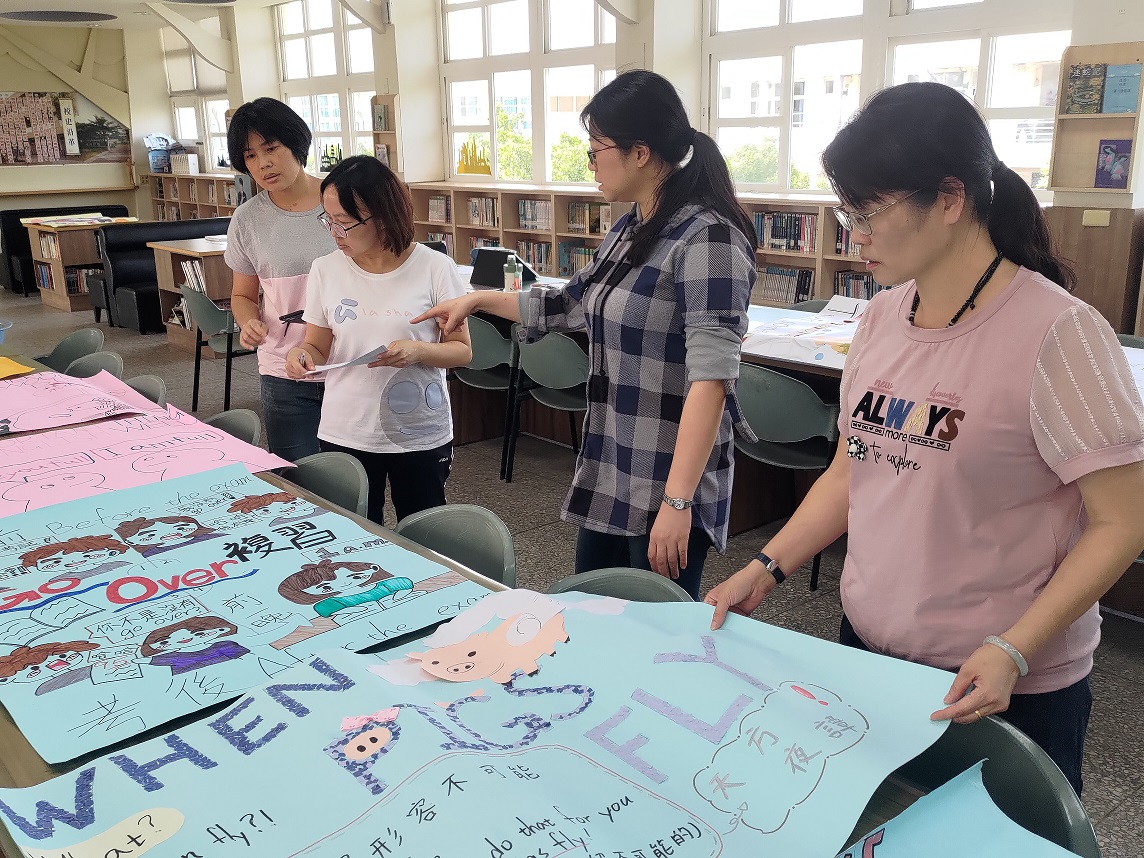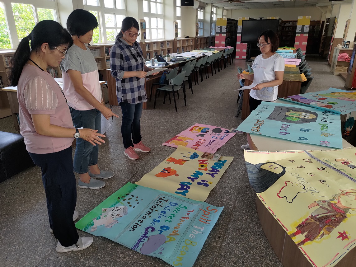 口說英語計畫生活美語海報設計競賽 班際海報設計,口說上台分享內容交給EPT(English Promotion Team)英語推動小組演出來,校內營造全校學生共學口說英語,海報呈現效果非一次性,除公開展示競賽成績,全校集會被演出來的生活美語,對繪製的學生是再一次的回饋。