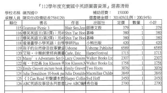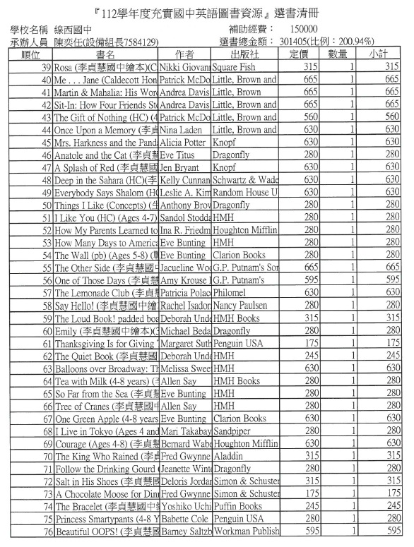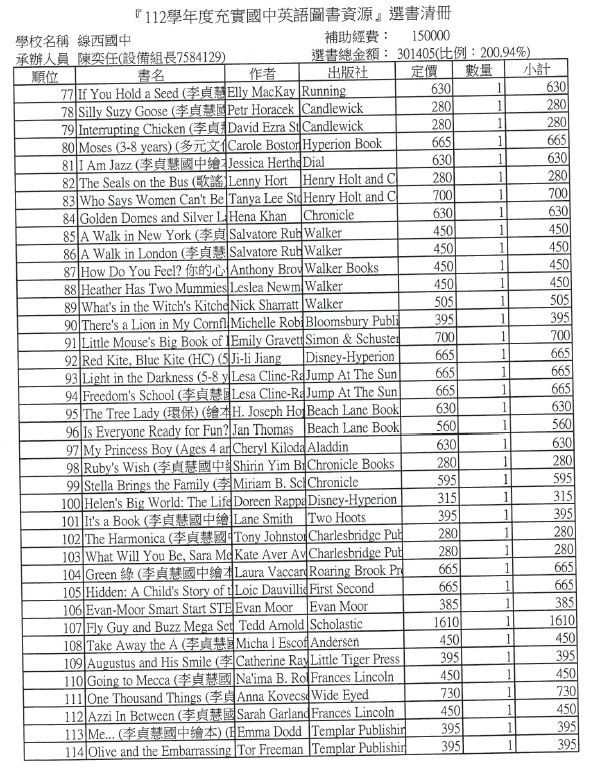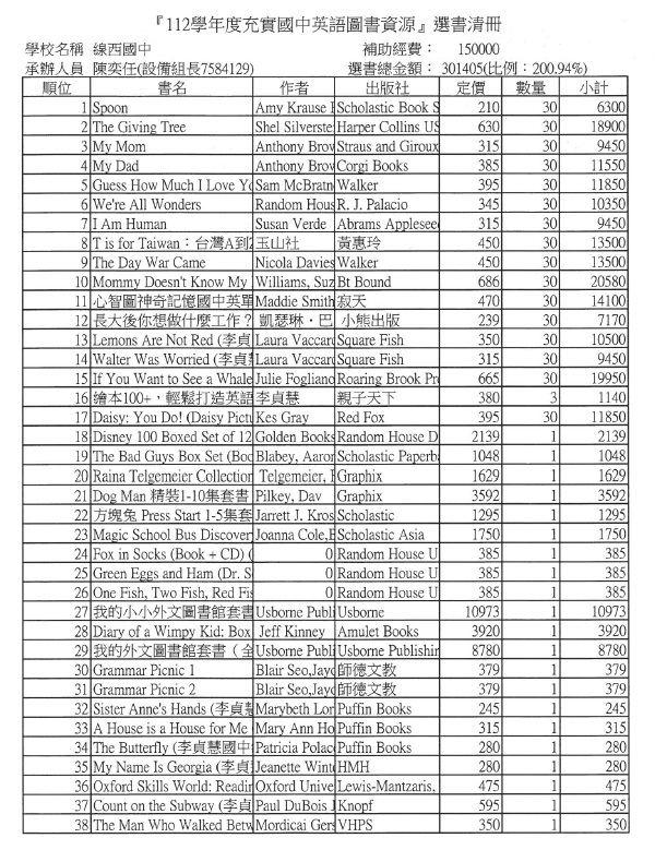 核定補助金額(新臺幣):150,000 元成立選書委員會進行選書評選之日期:112年8月23、24日