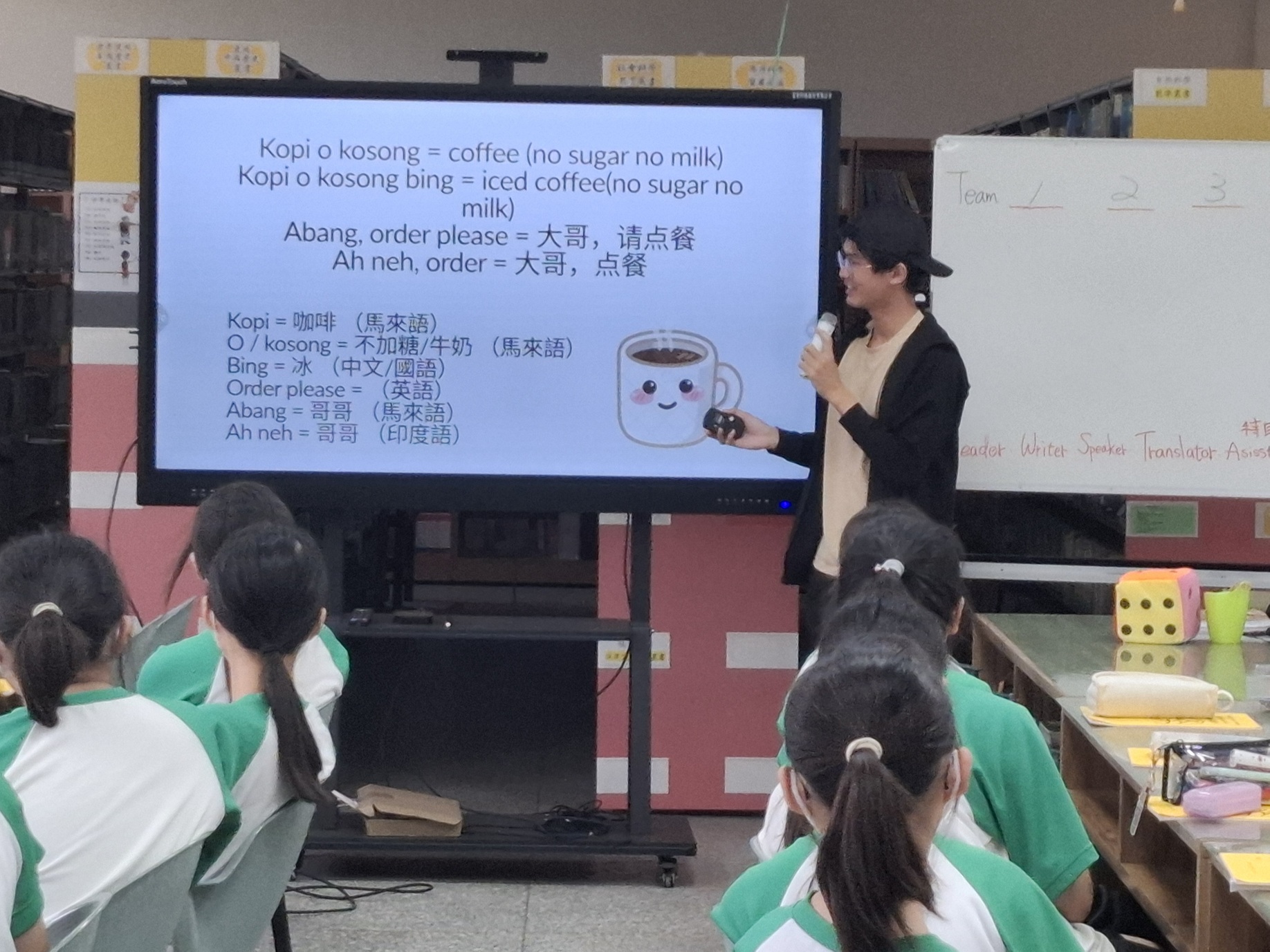 The course is assisted by Jack Tan, who works with English teachers to guide students in international education and bilingual courses. 八年級彈性課程閱履寰宇Reading & traveling 114學年度上學期由英文領域教師與國際志工Jack Tan 共備討論帶領學生感受國際教育與雙語互動 Jack介紹馬來西亞多元文化生活