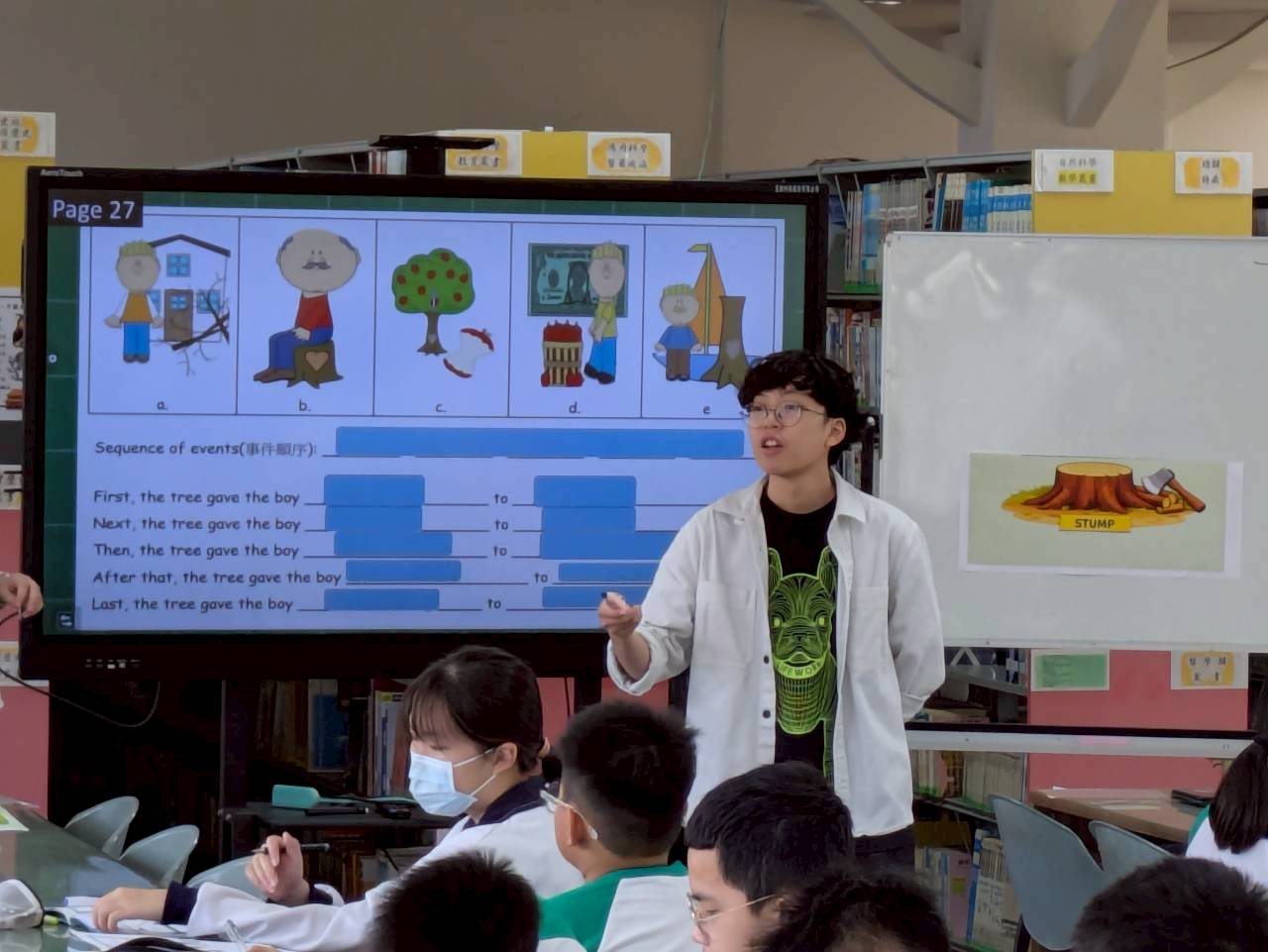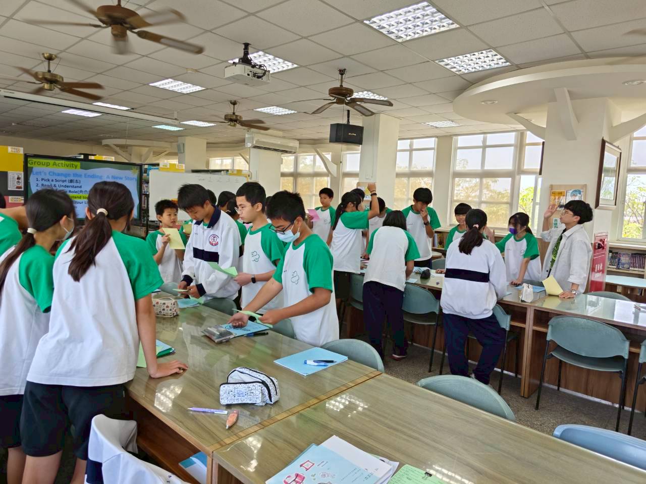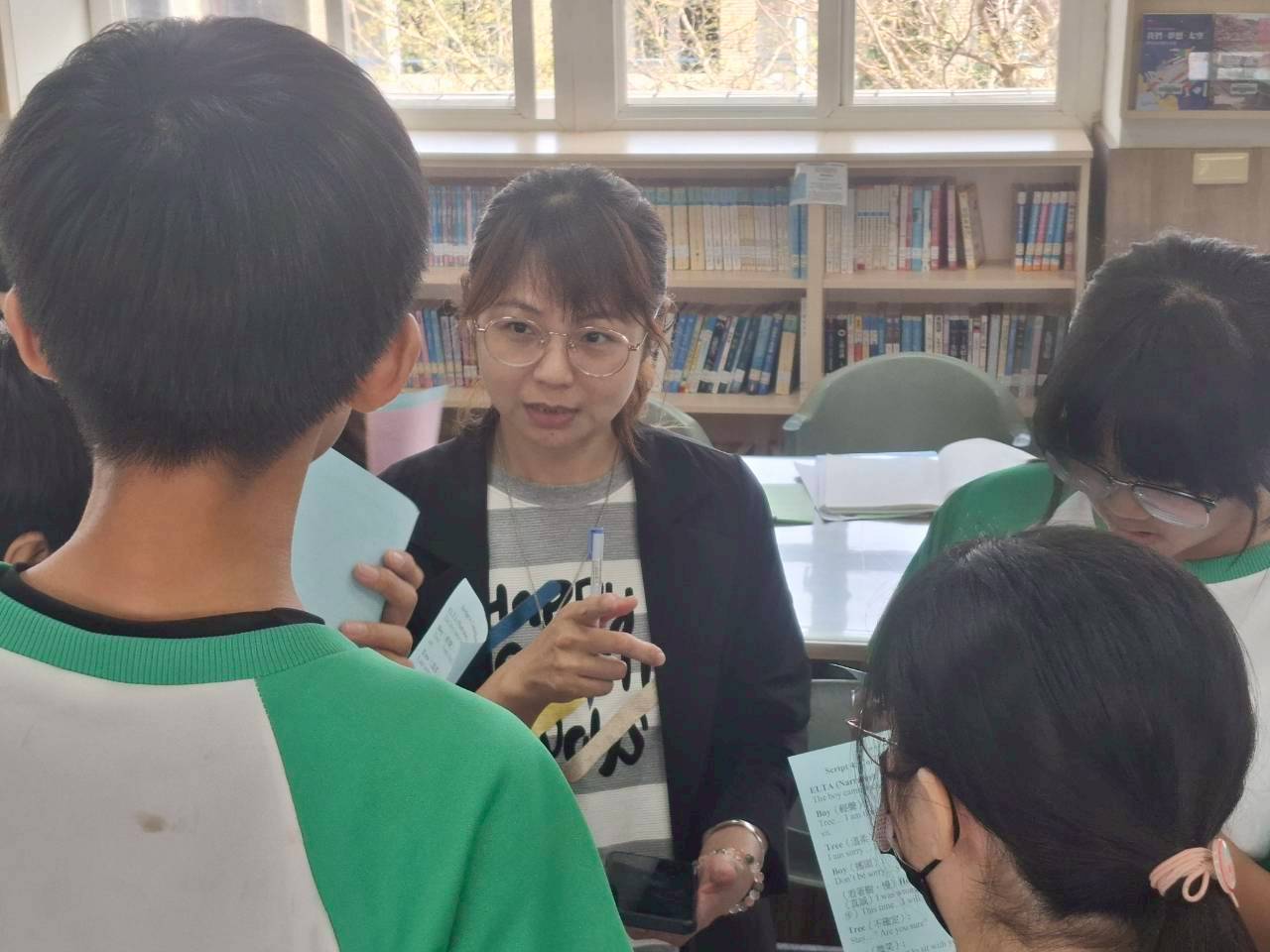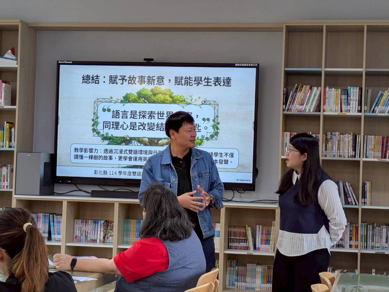 雙語生活化校園計畫縣級公開觀課,由本縣英資中心邀請教授到校指導,將學校閱履寰宇雙語繪本課程,實際操作並邀請各校英語教師蒞校一同參與,從說課、觀課、議課,一起觀察與討論,透過集體智慧,確保每一位學生在課堂中都能獲得有意義的學習。線中推動素養導向教學、雙語教育或數位融入教學,公開觀課是最佳的實踐場域。 本課堂設計:1.前置沉浸式閱讀、2.課堂教師協同讀者劇場、3.繪本主題說明、4.字彙認識與練習、5.學生小短劇、6.教師引導與說明、7.課堂複習與回饋、8.完成閱履寰宇學習手冊。 公開觀課/中師:粘惠鈞老師、外師/Michael