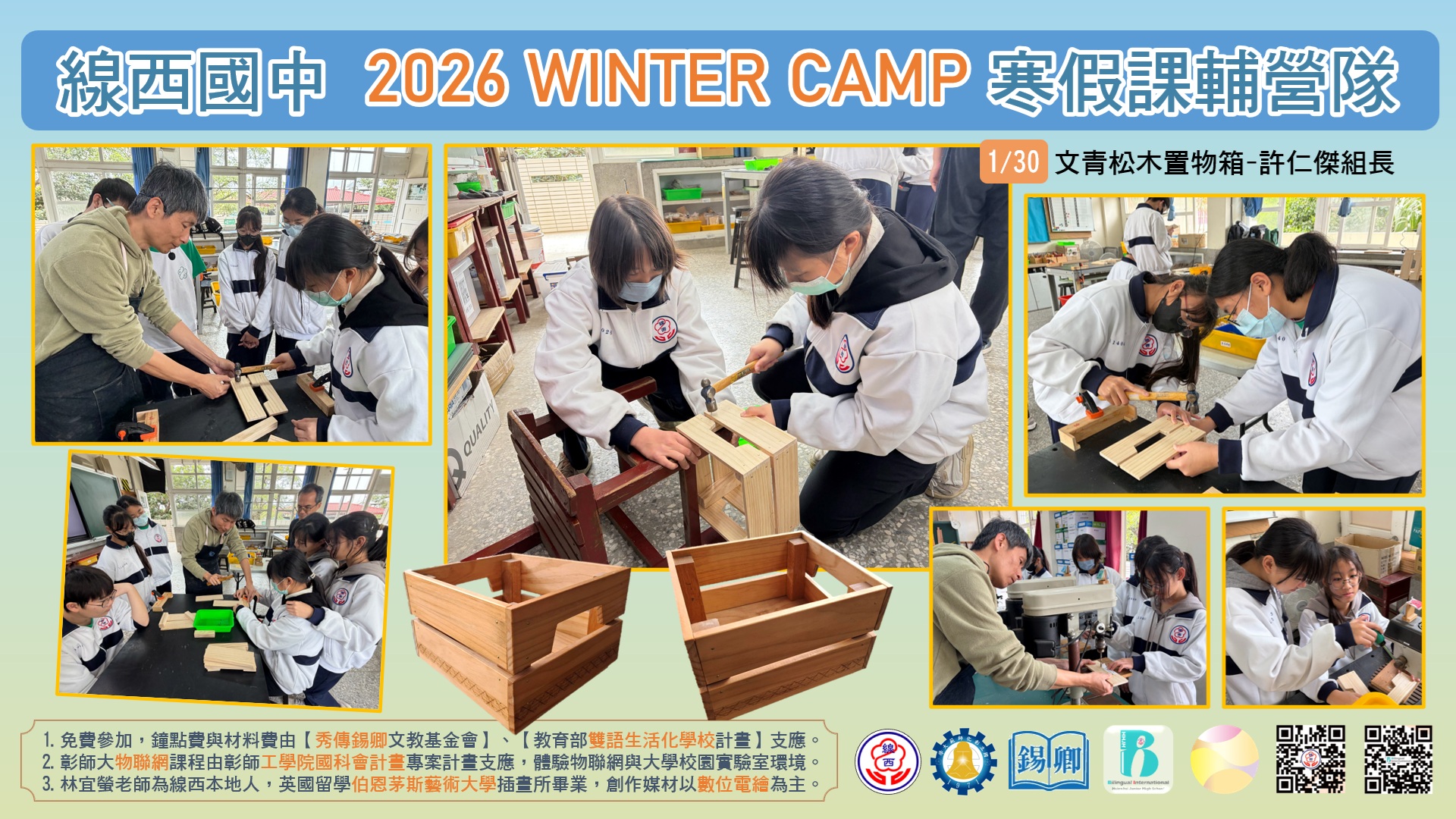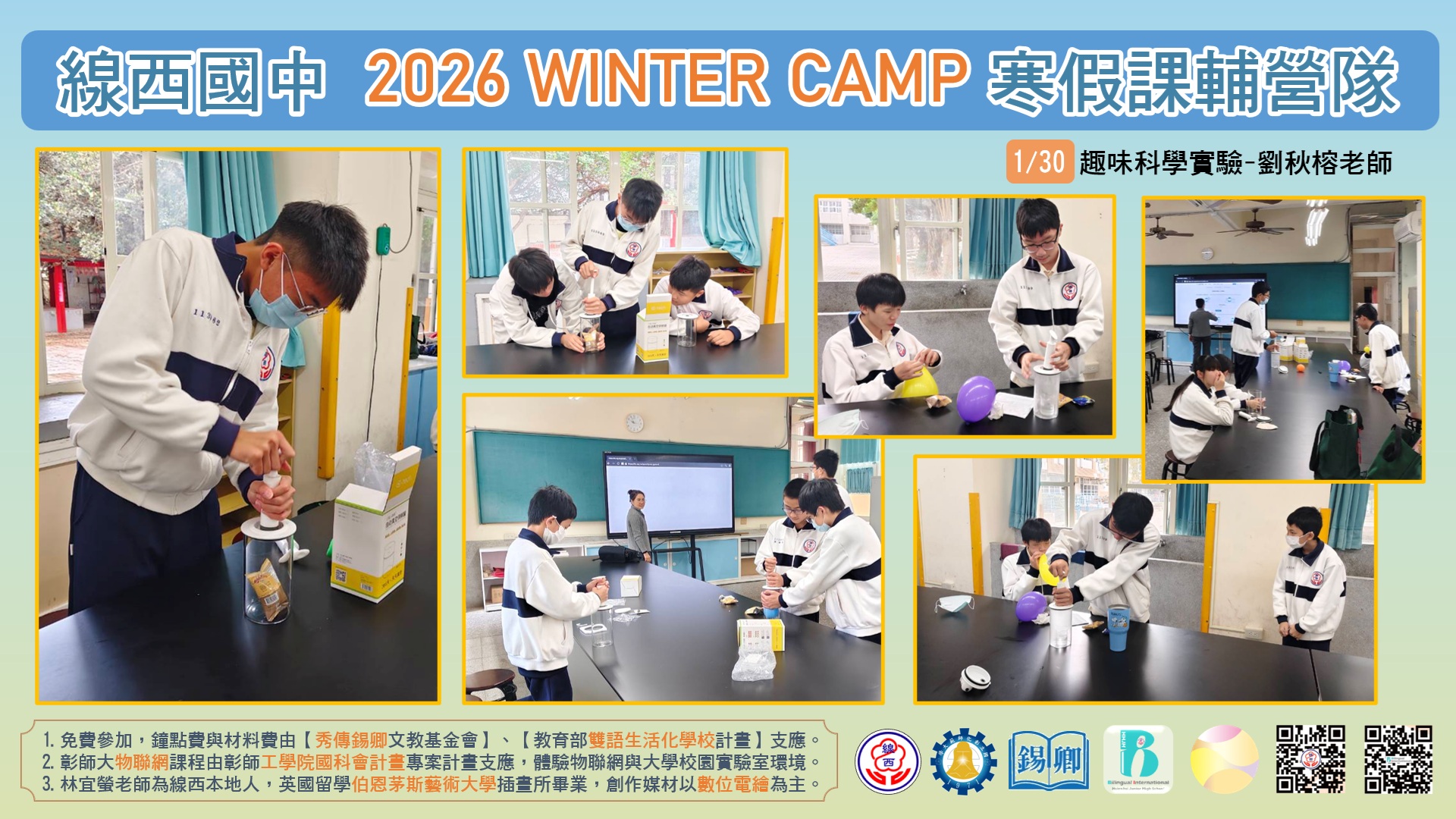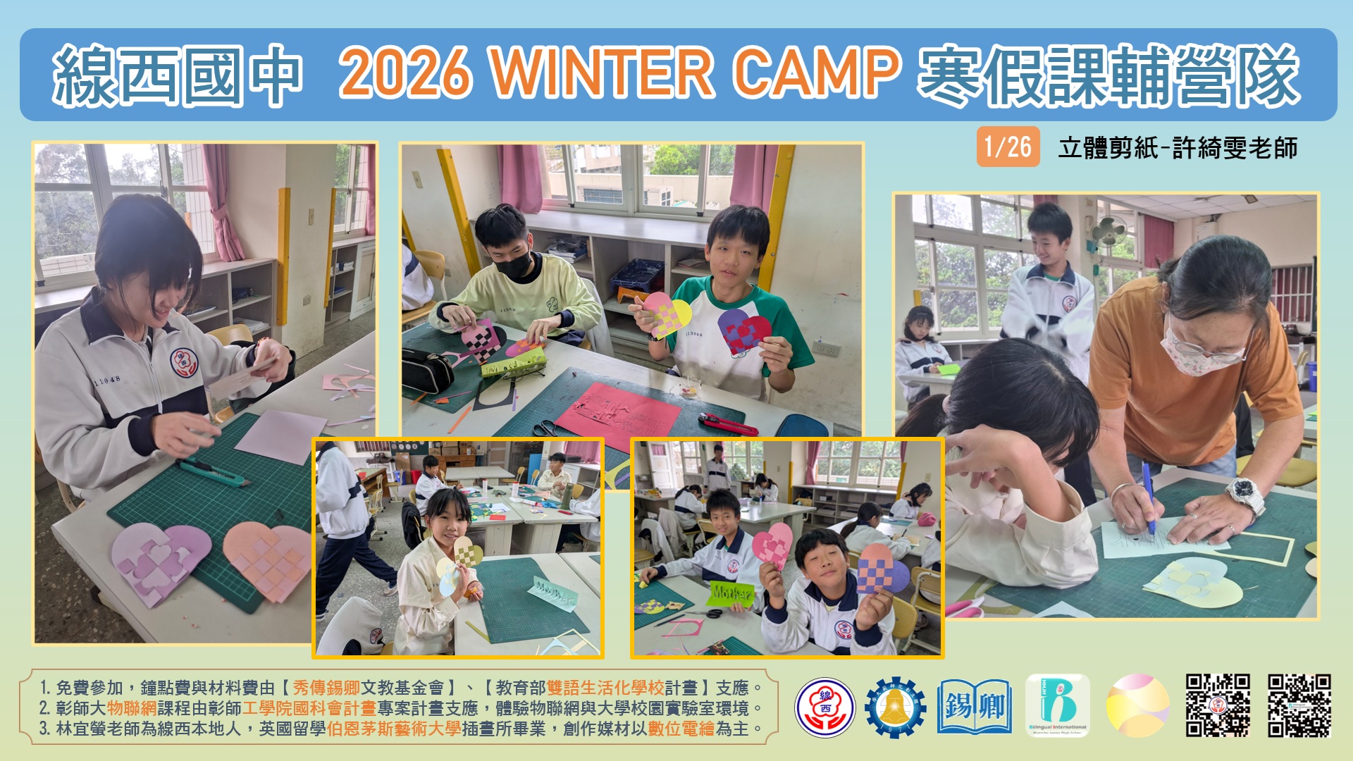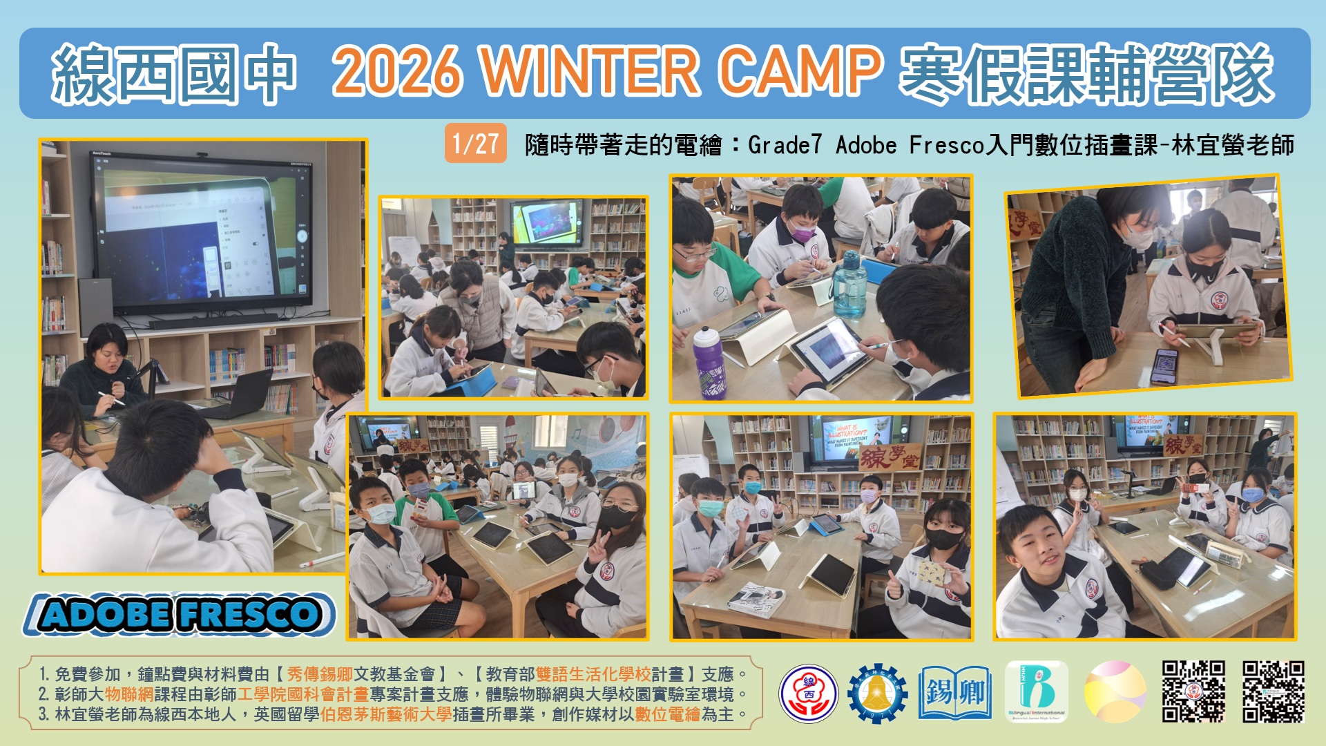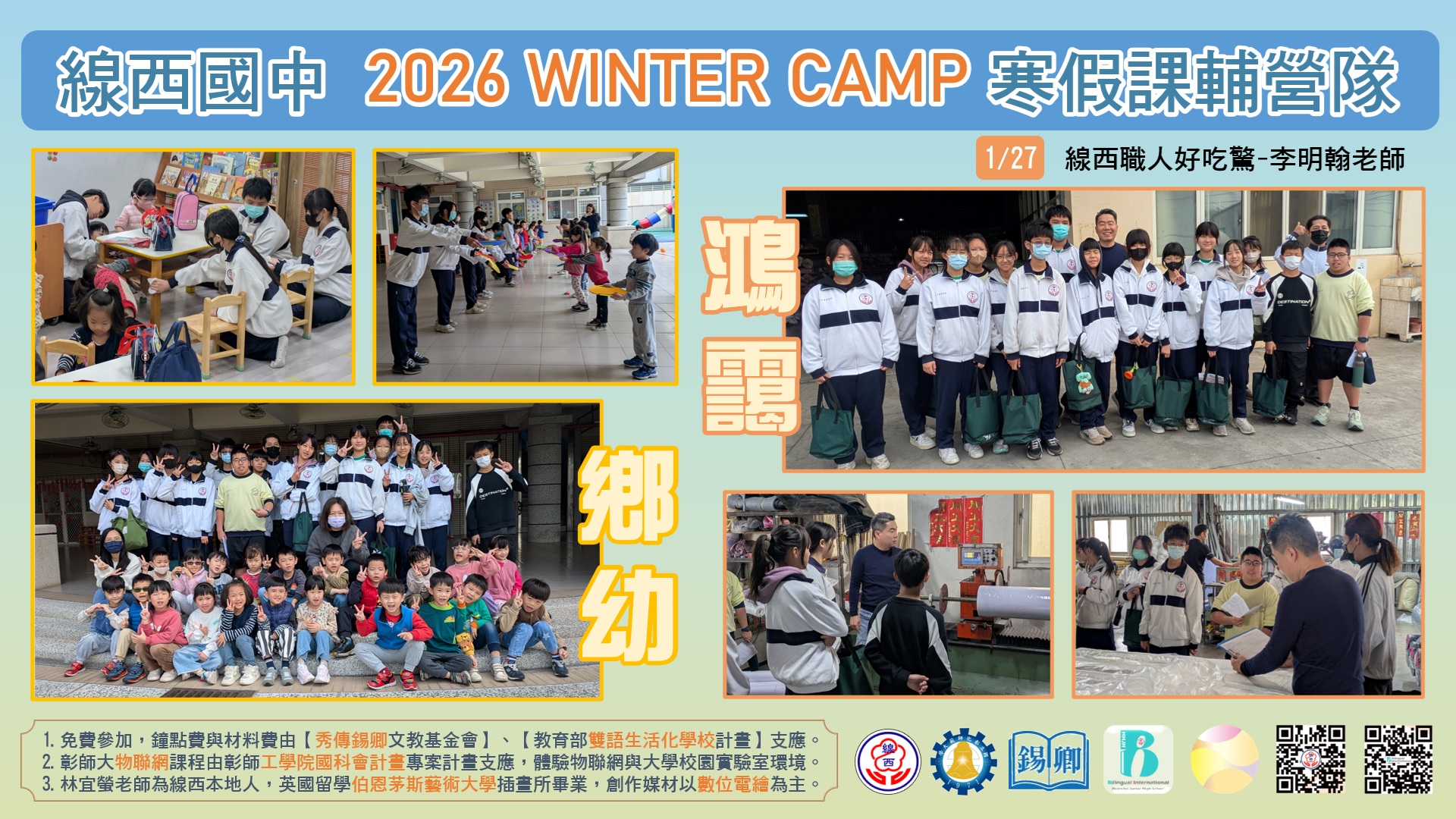 1.寒假課輔免費參加,鐘點費與材料費由【秀傳錫卿文教基金會】、【教育部雙語生活化學校計畫】支應。 2.彰師大物聯網課程由彰師工學院國科會計畫專案計畫支應,體驗物聯網與大學校園實驗室環境。 3.林宜螢老師為線西本地人,英國伯恩茅斯藝術大學插畫所畢業,創作媒材以電繪為主。 4.多項課程帶入雙語內容,讓學生學習認知各項專業知識,也感受雙語教學環境。 精彩成果展現