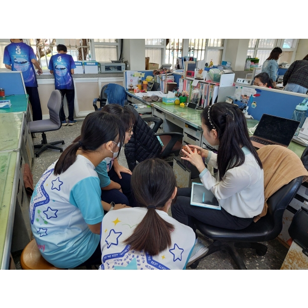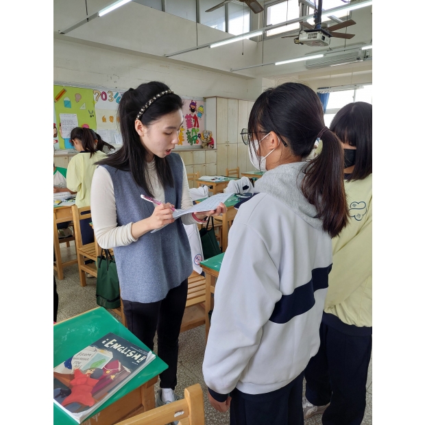 英語角是指為提高學生英語口說能力,而進行的一種英語口語練習活動,校內邀請國際志工在午休時辦理,或者是課間時段,學生自主尋找國際志工進行口說英語的互動,帶動學生學英語、說英語的氛圍,對話內容不用太難,簡單的小主題就可以進行聊天互動,學生更可使用生生有平板之數位軟體,即時使用網路資源,降低學生參與的焦慮感。英語角不希望侷限時間、地點、形式,期望打開學生學習英語的熱情,以小組形式用英語對話,聚在一起練習英語口語。
