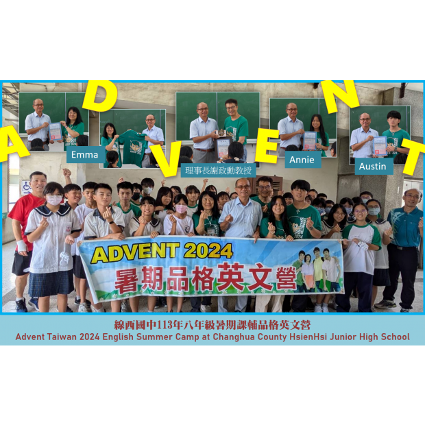 ADVENT團隊為暑期品格英文營預備的課程以結合英語會話課程與品格教育為規劃框架,其中品格教育強調多個主要品格價值,包括自我認同、誠實、勇氣、寬恕、同情及正確道德觀等。ADVENT課程的目標是希望透過英語課程的學習,讓學生能從中學習到這些對於個人、家庭與社會等基本且重要的品格。