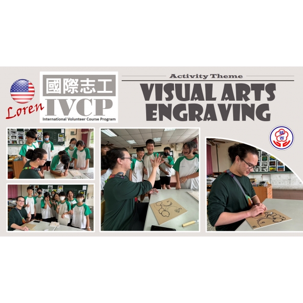 在視覺藝術課程中與志工共作藝品,學生學習不同文化的藝術表現形式,激發創意思考與美感能力。