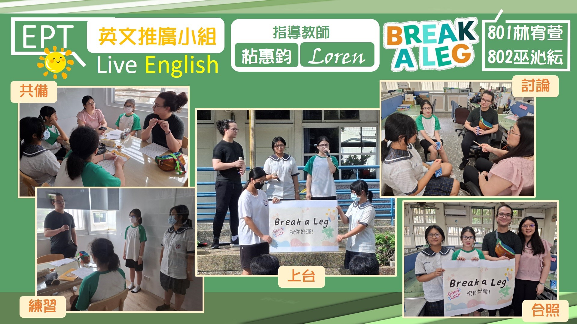 「Break a leg!」是英文中常見又有趣的生活美語(idiom),意思是: